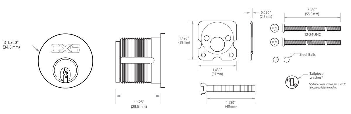 Includes pre-installed Adams Rite® type cam and CX5-RIMPACK Rim Conversion Kit.